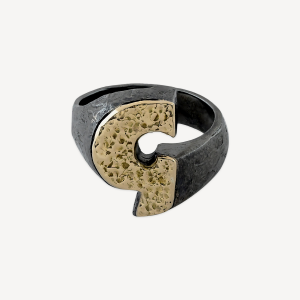 Anello collezione Monogramma in Argento 925 brunito e Oro giallo 18K peso totale 13 gr.